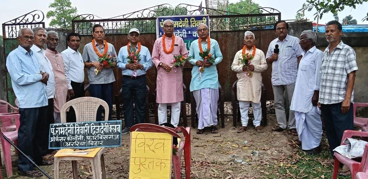फारबिसगंज। स्थानीय प्रोफेसर कॉलोनी स्थित पीडब्ल्यूडी परिसर में गुरुवार को पं. रामदेनी तिवारी 'द्विजदेनी' क्लब द्वारा 'विश्व पुस्तक दिवस' के अवसर पर एक भव्य साहित्यिक समारोह का आयोजन किया गया। वयोवृद्ध साहित्य प्रेमी शिव नारायण चौधरी की अध्यक्षता और हिंदी सेवी अरविंद ठाकुर के कुशल संचालन में आयोजित इस कार्यक्रम में पुस्तकों के महत्व और बौद्धिक संपदा के संरक्षण पर गंभीर चर्चा हुई।